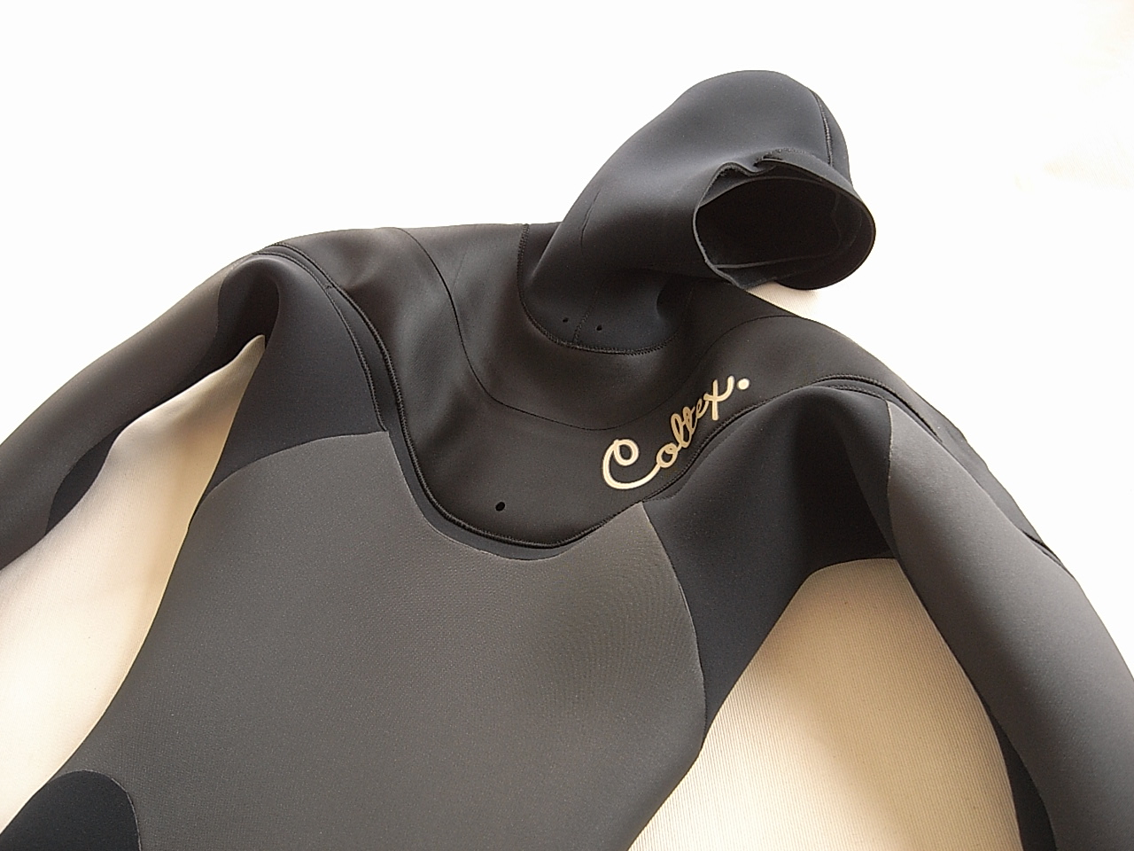 Coltex.のフードは圧迫の無い2mm仕様、ライトさには驚いてもらえるはずです。